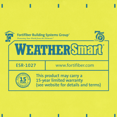WeatherSmart® by Henry Company represents a new generation in housewrap technology, offering an intelligent housewrap solution – one that delivers the ideal balance between water intrusion protection and moisture vapor breathability; so it can be used in any climate and behind most exterior claddings. Part of the Fortifiber® 1-2-3 moisture control system, WeatherSmart® is designed to withstand the rigors of the jobsite and the elements, and is backed by an industry-leading 15-year warranty.
